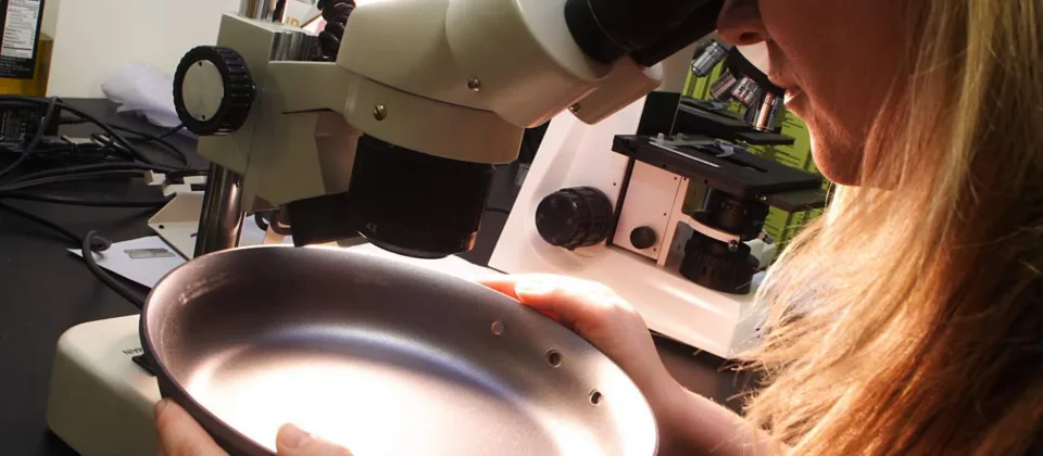 The pan is heated to 400° Fahrenheit (205° Celsius) with a hotplate, and is filled with a thin layer of cooking oil. To gauge coating performance, GMM measures the number of cycles it takes to penetrate the coating film to bare metal.